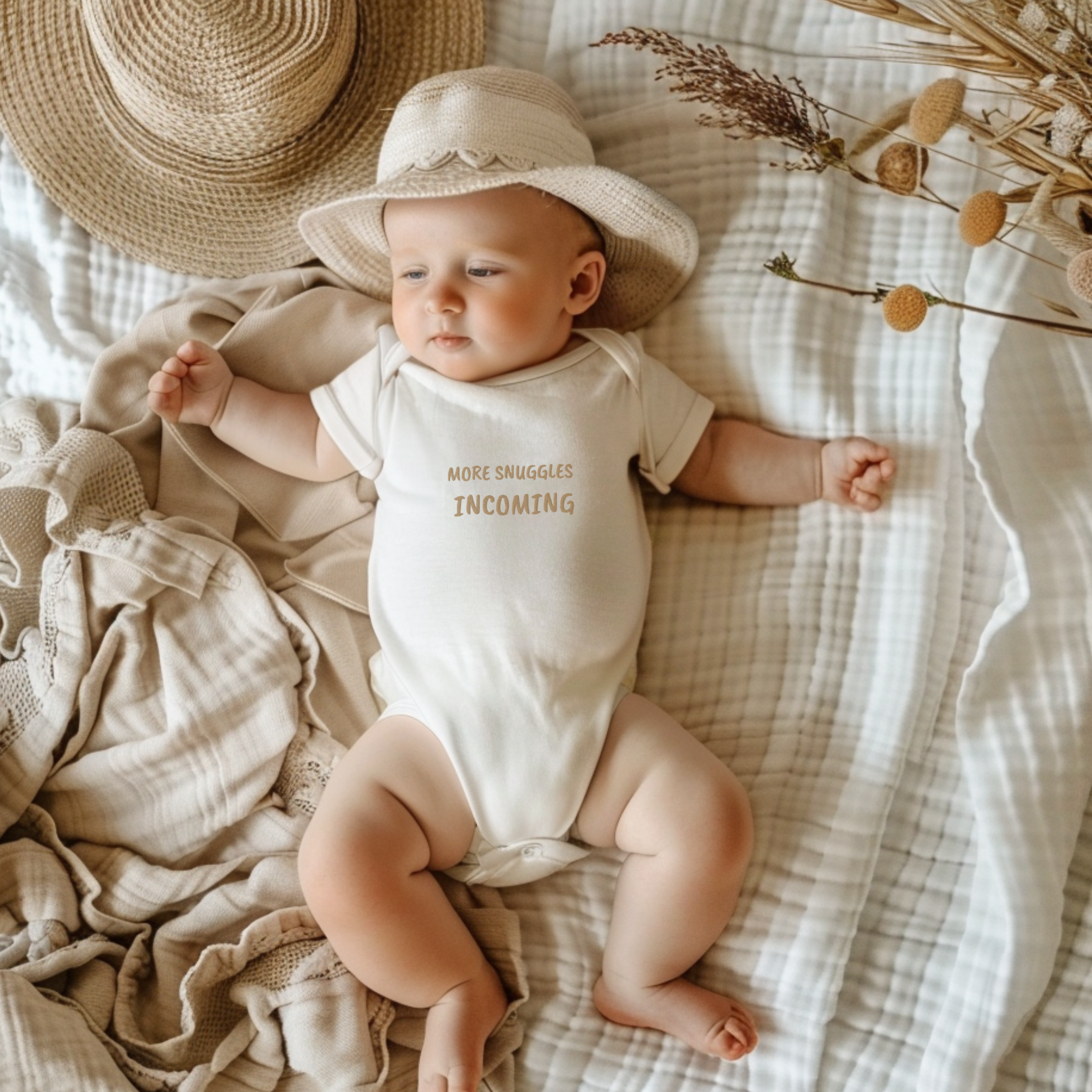 Explore our delightful collections of soft, organic cotton baby bodysuits, adorable t-shirts, and stylish mommy apparel, perfect for baby and pregnancy announcements. Embrace every special moment with our charming slogan designs, crafted with love for your growing family.